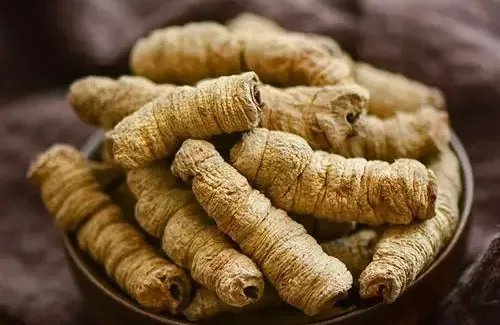 根扁圆柱形式圆柱形,略弯曲,长度不等,直径1~2cm,表面灰黄色或灰黄棕色,有的微带紫色,具纵皱及深陷的横纹,有的呈缢缩状或皮部横向断离而露出木部,形如鸡肠。质坚韧,折断面不平,皮部厚5~7mm,淡紫色,木部直径2~4mm。气微,味苦,略涩。 1、巴戟天:为扁圆柱形,略弯曲,长短不等,直径0.5~2cm。表面灰黄色或暗灰色,具纵纹和横裂纹,有的皮部横向断离露出木部;质韧,断面皮部厚,紫色或淡紫色,易与木部剥离;木部坚硬,黄棕色或黄白色,直径1~5mm。气微,味甘而微涩。 2、巴载肉:呈扁圆柱形短段或不规则块。表面灰黄色或暗灰色,具纵纹和横裂纹。切面皮部厚,紫色或淡紫色,中空。气微,味甘而微涩。 3、盐巴戟天:呈扁圆柱形短段或不规则块。表面灰黄色或暗灰色,具纵纹和横裂纹。切面皮部厚,紫色或淡紫色,中空。气微,味甘、咸而微涩。 4、制巴戟天:呈扁圆柱形短段或不规则块。表面灰黄色或暗灰色,具纵绞和横裂纹。切面皮部厚,紫色或淡紫色,中空。气微,味甘而微涩。