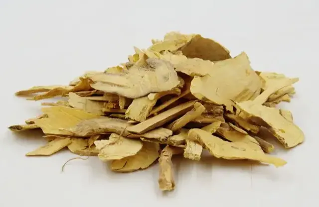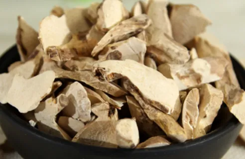 主根多粗直而长,有的呈圆柱形作不规则弯曲扭转,直径6~20mm;侧根多数,并有无数细根,表面灰棕色,具不规则纵横裂纹。质坚硬,不易折断,断面黄白色或淡黄色,皮部厚,鲜时易剥离,内面光滑,富有粘质。外形极似常山,但断面为白心,故称“白常山”。气微,味淡。饮片呈淡黄色。