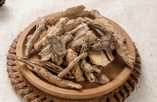 干燥根皮为短小的筒状或槽状卷片,大小不一,一般长3~10cm,宽0.6~1.5cm,厚约3mm。外表面灰黄色或棕黄色,粗糙,有错杂的纵裂纹,易剥落。内表面黄白色,较平坦,有细纵纹。质轻脆,易折断,断面不平坦,外层棕黄色,内层灰白色。臭微。味微甘。