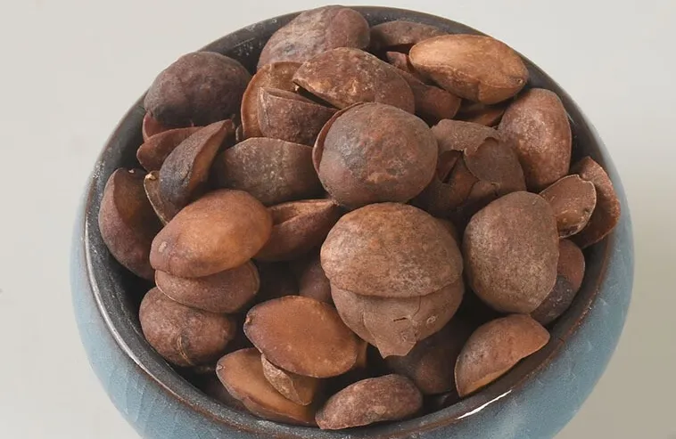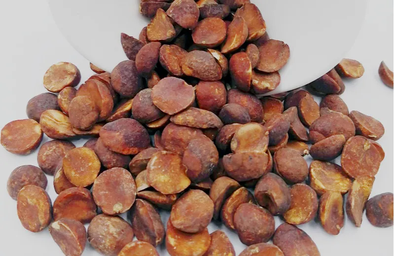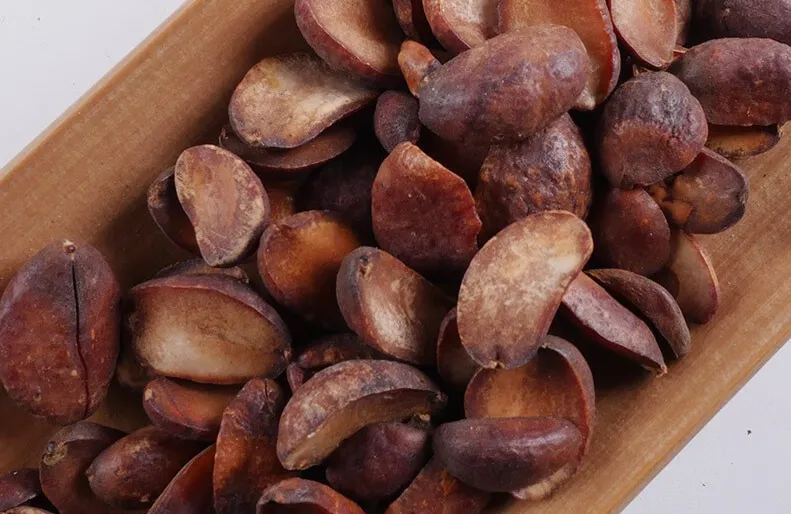 果实圆形或椭圆形,直径2-5cm,外果皮黄色或橙黄色,具柔毛,顶部具黑色宿存萼齿,除去萼齿可见一小空室。基部有短果柄,具糙毛。外果皮薄,中果皮肉质,厚3-7mm,内果皮纸膜质,棕色,内有1至多颗种子。气微清香,味甘、酸。