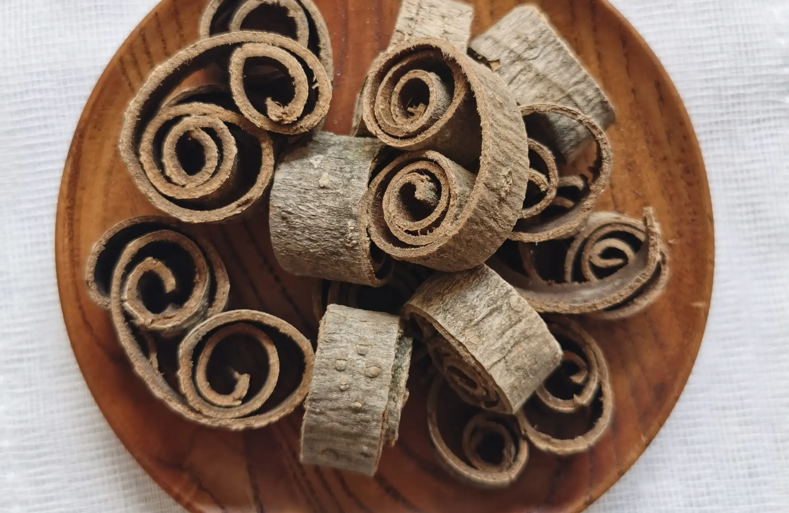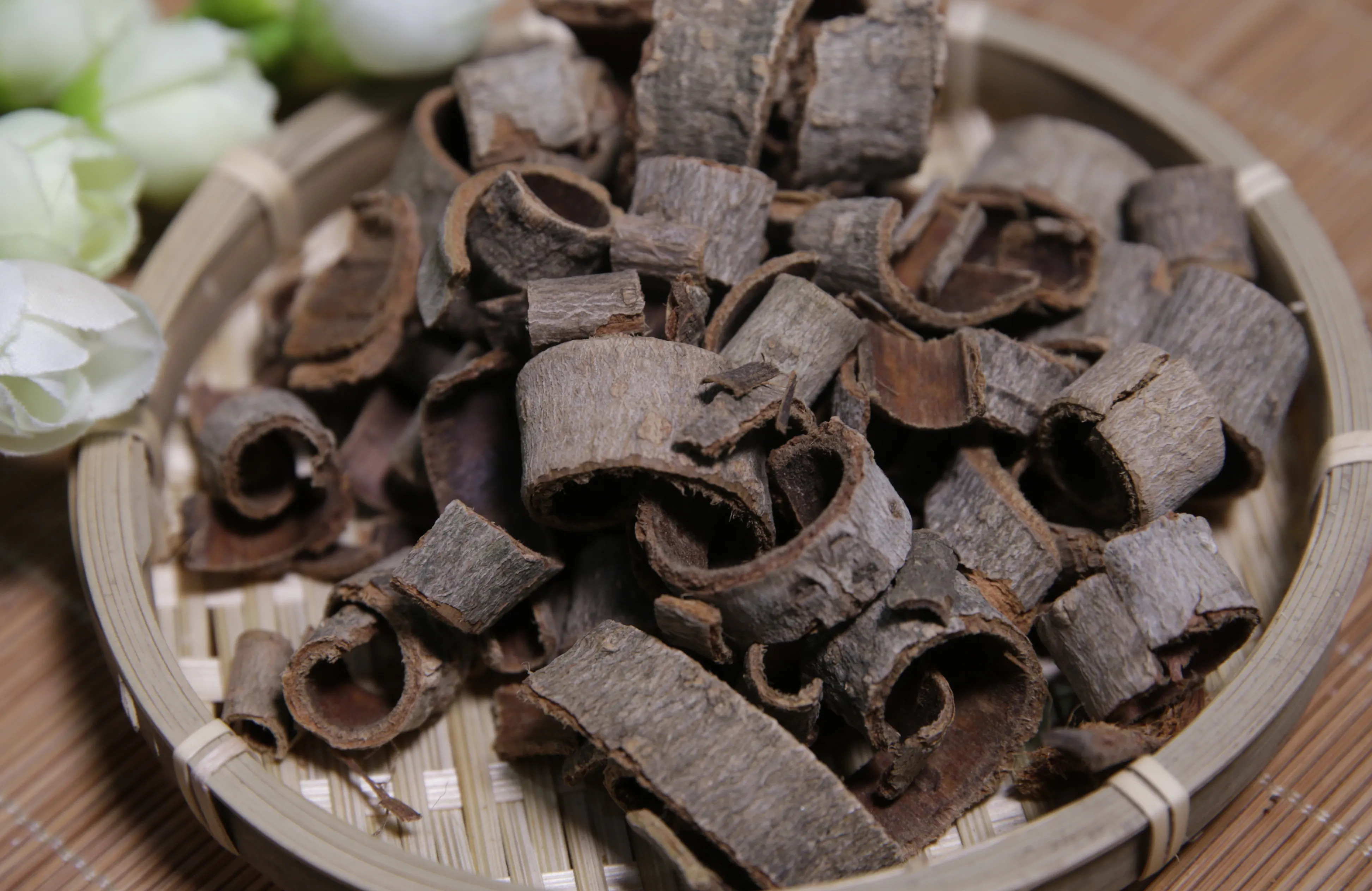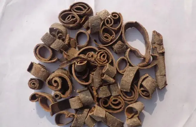 干皮:呈卷筒状或双卷筒状,长30~35cm,厚2~7mm,习称“筒朴”;近根部的干皮一端展开如喇叭口,习称“靴筒朴”。外表面灰棕色或灰褐色,粗糙,栓皮呈鳞片状,较易剥落,有明显的椭圆形皮孔和纵皱纹,刮去栓皮者显黄棕色;内表面紫棕色或深紫褐色,具细密纵纹,划之显油痕。质坚硬,不易折断。断面颗粒性,外层灰棕色,内层紫褐色或棕色,有油性,有的可见多数小亮星。气香,味辛辣,微苦。根皮 (根朴) :为主根及支根的皮,厚3~5mm,形状不一,有卷筒状、片块状、羊耳状等;细小很皮形弯曲如鸡肠,习称“鸡肠朴”。外表面灰黄色或灰褐色色。质稍坚硬,较易折断,断面纤维性。枝皮 (枝朴) :呈单筒状,长10~20cm,厚1~2mm。外表面灰褐色,内表面黄棕色。质脆,易折断,断面纤维性。