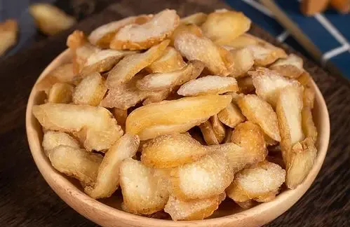 采集加工 春、秋二季采挖,除去须根,洗净,置沸水中略烫或蒸至透心,干燥。 炮制方法 酒黄精:取净黄精,照酒炖法或酒蒸法炖透或蒸透,稍晾,切厚片,干燥。每100kg黄精,用黄酒20kg。呈不规则的厚片。表面棕褐色至黑色,有光泽,中心棕色至浅褐色,可见筋脉小点。质较柔软。味甜,微有酒香气。