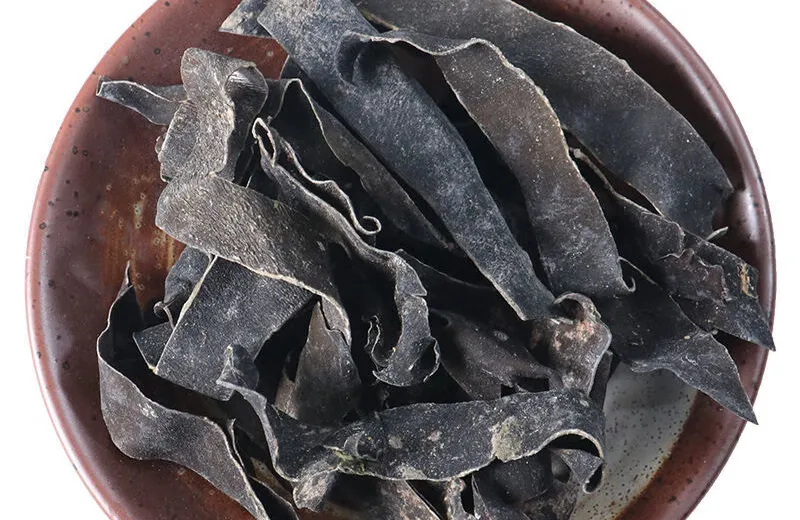海带科植物海带Laminaria japonica Aresch.或翅藻科植物昆布 (鹅掌菜) Ecklonia kurome Okam.的干燥叶状体。