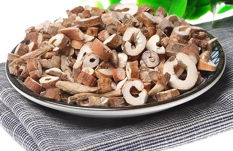 呈筒状或半筒状,有纵剖开的缝,略向内卷曲或张开,长5~20cm,直径0.5~1.2cm,厚0.1~0.4cm。原丹皮外表面灰褐色或黄褐色,有多数横长皮孔及细根痕,栓皮脱落处粉红色;刮丹皮粉红色或淡红色。内表面淡灰黄色或浅棕色,有明显的细纵纹,常见发亮的结晶 (系针、柱状牡丹酚结晶) 。质硬而脆,易折断。断面较平坦,淡粉红色,粉性,纹理不明显。气芳香,味微苦而涩,有麻舌感 。
