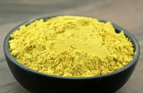 花粉为黄色粉末。体轻,放水中则飘浮水面。手捻有骨腻感,易附着手指上,气微,味淡。花粉粒类圆形或椭圆形,直径17~29μm,表面有网状雕纹,周边轮廓线光滑,呈凸波状或齿轮状,具单孔,不甚明显。