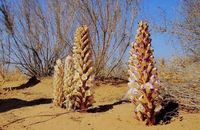 4-5月上旬采挖刚出土的肉苁黄,留小采大。去掉花序或苁蓉头,晾晒于干将沙滩上或房顶上,1个多月后曲黄白色变成肉质棕褐色,即为甜大芸。秋季采收者因水分大,不易干燥,故把肥大者投入盐湖中,腌1-3年,用时洗去盐分,叫盐大芸。