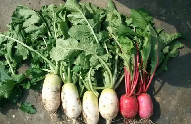 十字花科植物莱菔Raphanus sativus L.的鲜根。