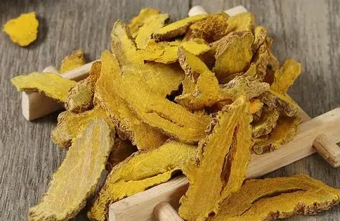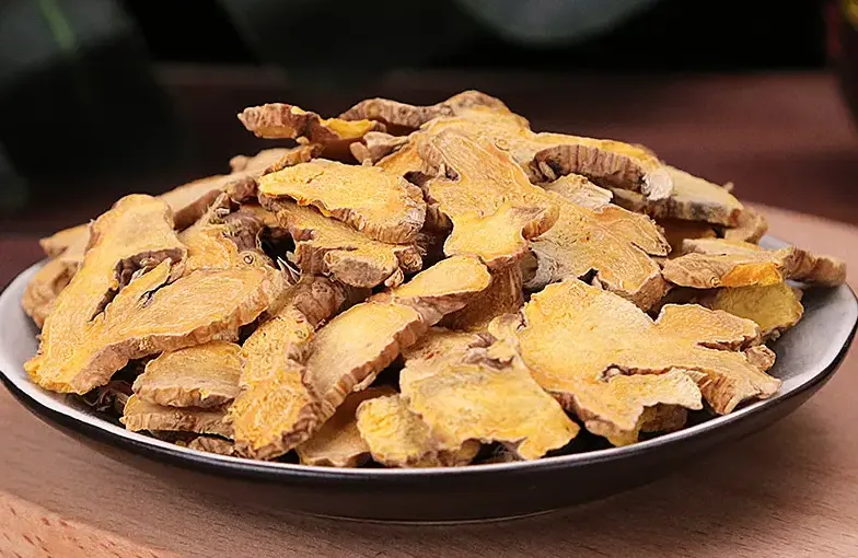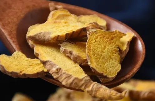 干燥根茎呈不规则的结节状,长约3~10cm,直径1~1.5cm。表面灰褐色或有黑褐色斑,皱缩有斜向或扭曲的环状皱纹,排列甚密,上面有圆盘状凹陷茎痕,下面有残留的细根及根痕。质坚硬,断面黄色,颗粒状。气微,味苦。
